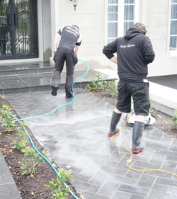 We start by inspecting your bluestone area to assess staining, moisture damage, existing sealers, and the overall condition of the stone. - Pre-Treatment of Stains and Contaminants